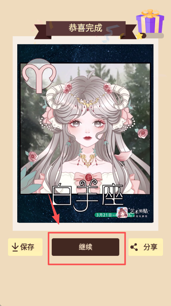 4、最后,完成装扮后,点击“继续”按钮保存你的作品并进入下一步。