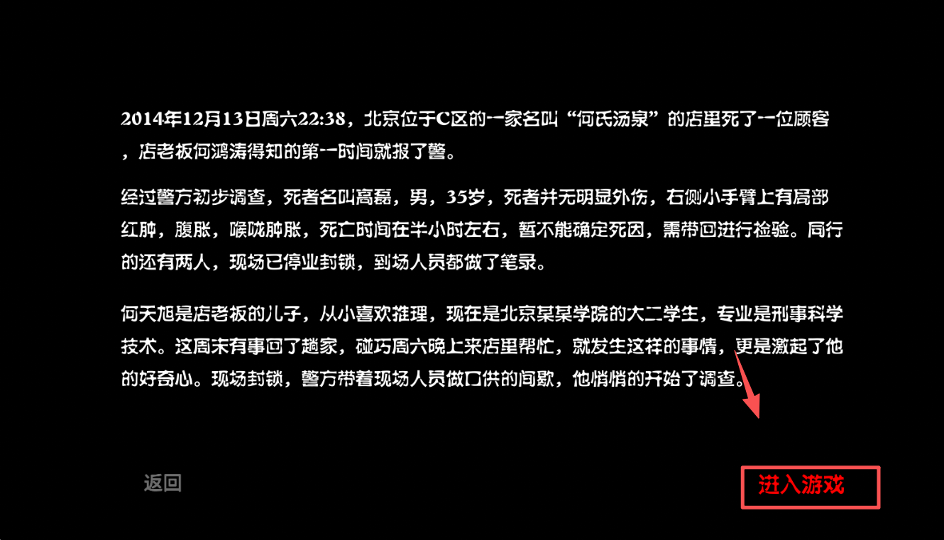 2、阅读背景故事后,点击“进入游戏”继续。了解故事背景有助于更好地理解游戏情节。