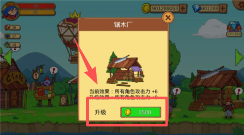 3、点击“升级”按钮提升能力。在建筑界面中,点击升级来增强角色或建筑的能力。