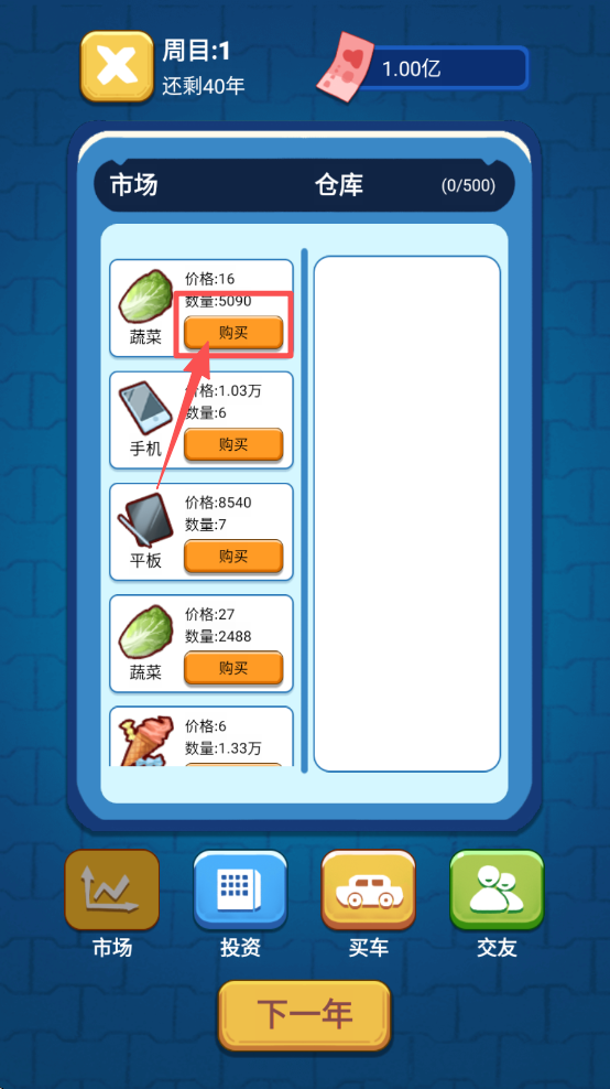 2、点击“购买”按钮进行交易。在市场中选择商品,点击购买进行交易。