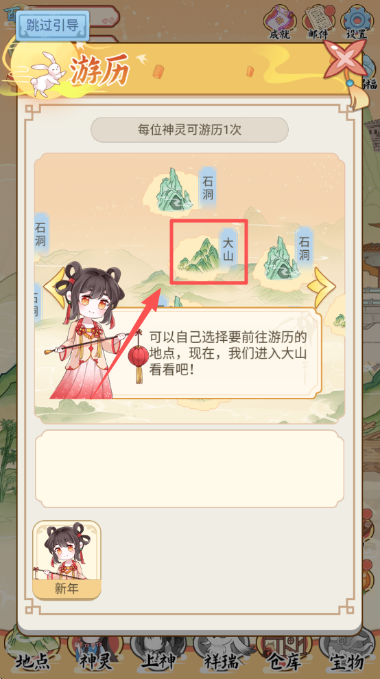 4、选择游历地点开始游戏。在游历界面中,选择地点开始你的游历冒险。