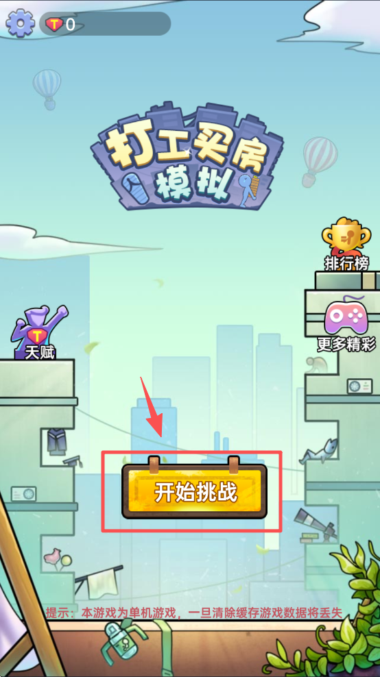 1、点击“开始挑战”进入游戏。这是开始游戏的第一步,点击后即可进入游戏主界面。