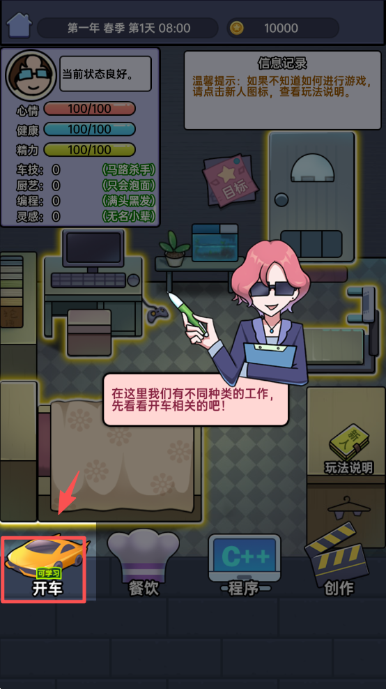 2、选择“开车”开始工作。在主界面中选择开车,开始你的职业生涯。