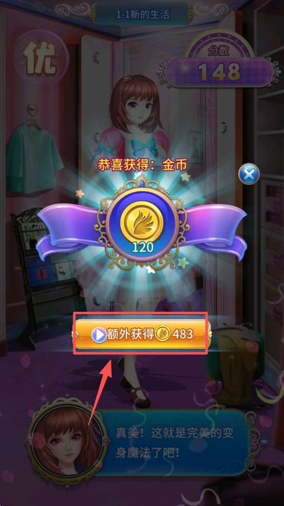 4、获得金币奖励,查看得分和额外奖励,享受游戏带来的乐趣。