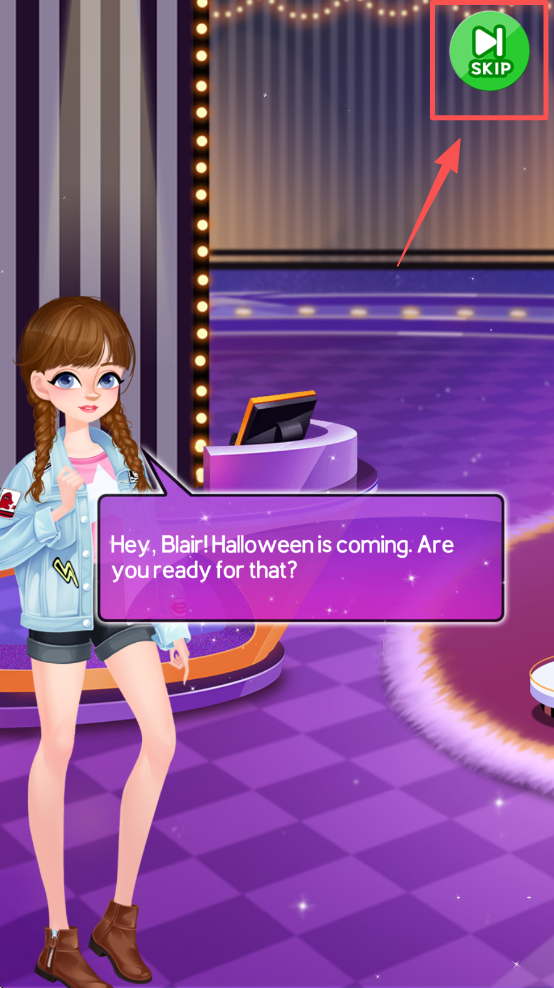 3、点击“SKIP”跳过对话,快速进入装扮环节,开始你的设计。