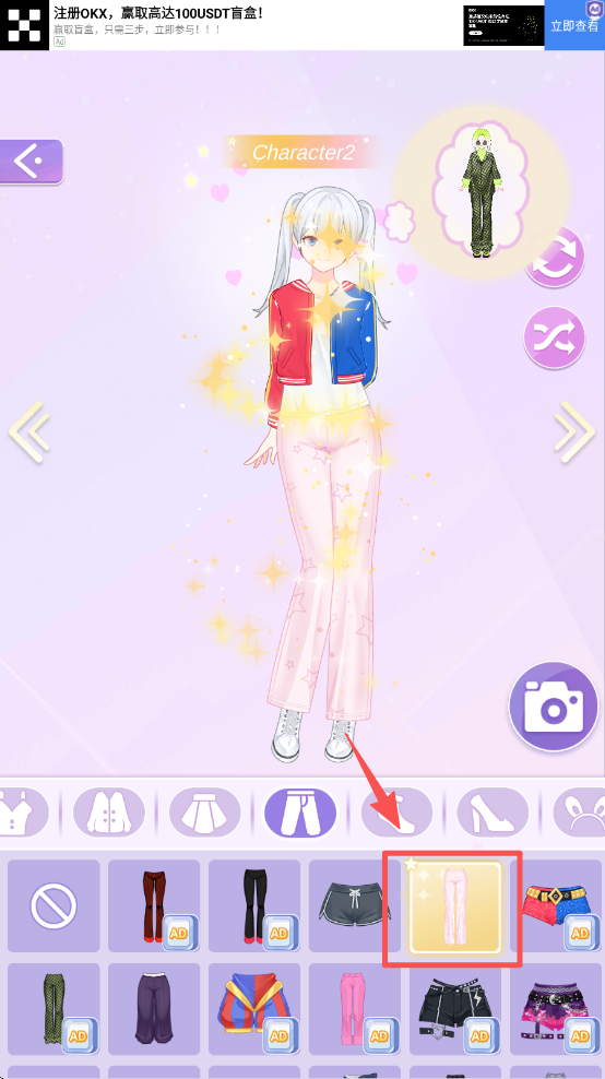 4、继续点击选择裤子,完成你的公主角色的整体造型,展现个性风格。