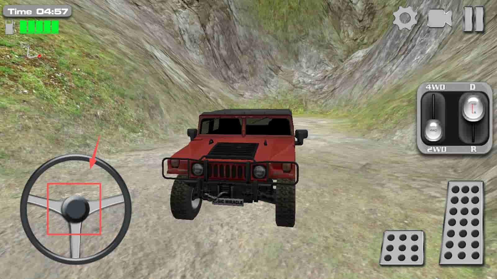 3、使用虚拟方向盘控制车辆,掌握方向,通过各种地形。