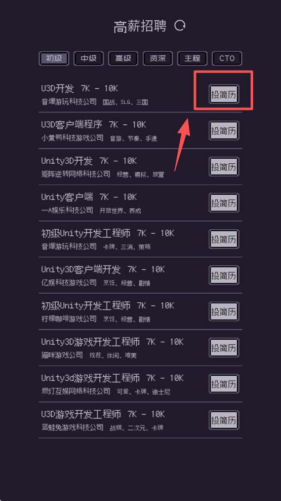 4、浏览高薪招聘信息,选择你感兴趣的职位,点击“投简历”按钮进行申请。