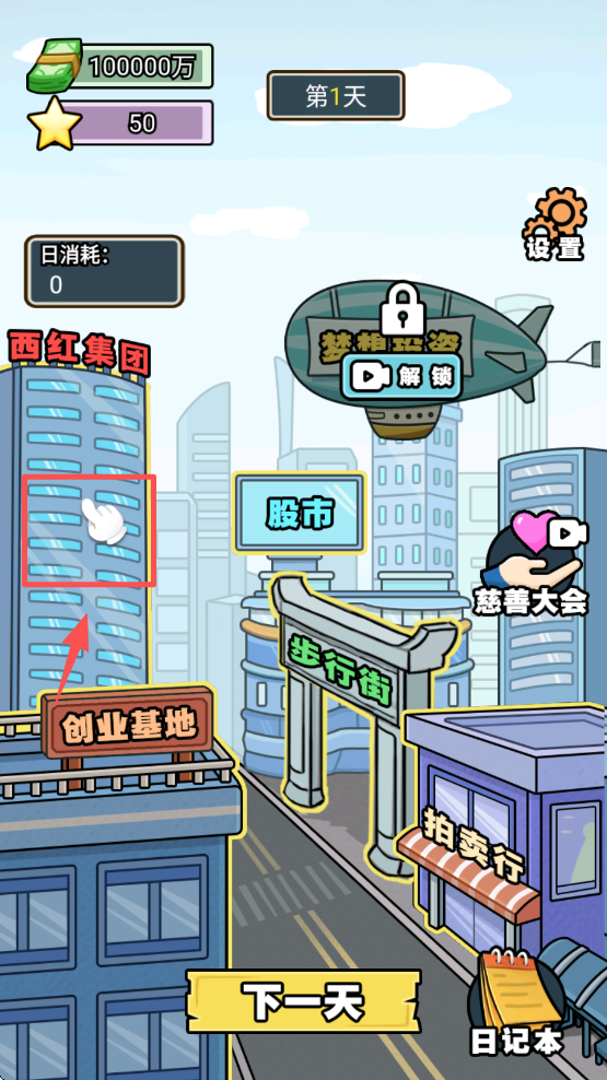 2、在主界面上,点击“创业基地”建筑,开始你的创业之路。