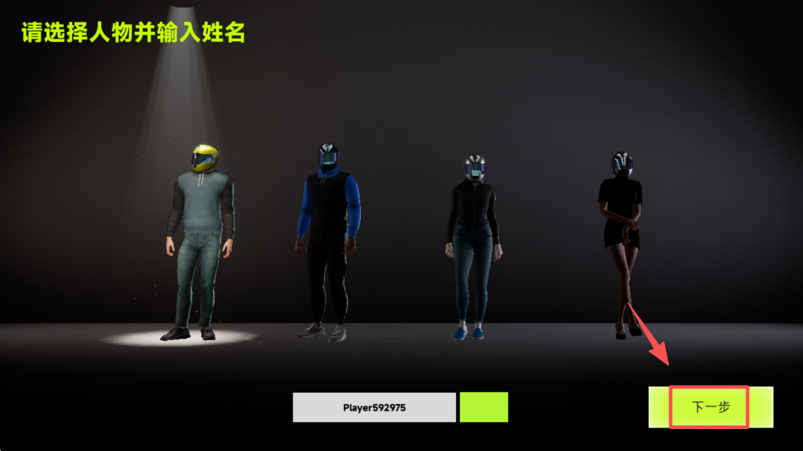 4、完成角色选择和自定义后,点击“下一步”继续游戏设置流程。