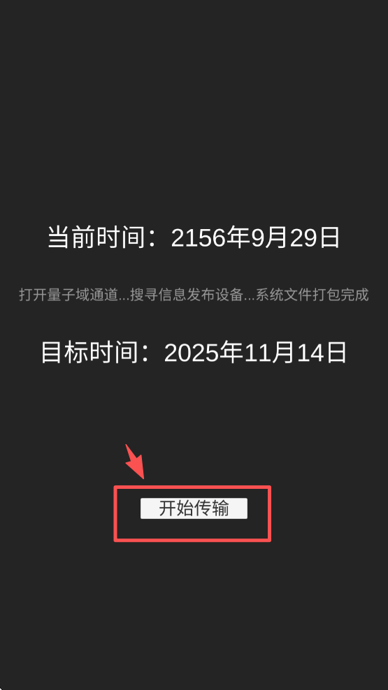1、点击“开始传输”按钮,进入时间旅行界面,开始你的时间旅行。
