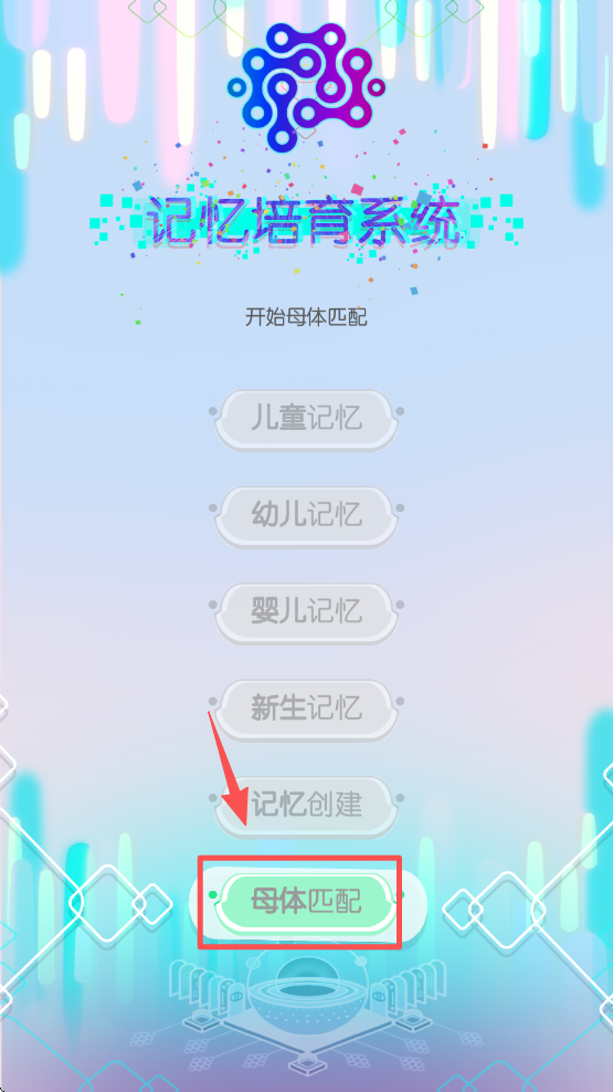 2、选择“母体匹配”选项,开始母体匹配过程,为记忆培育做准备。