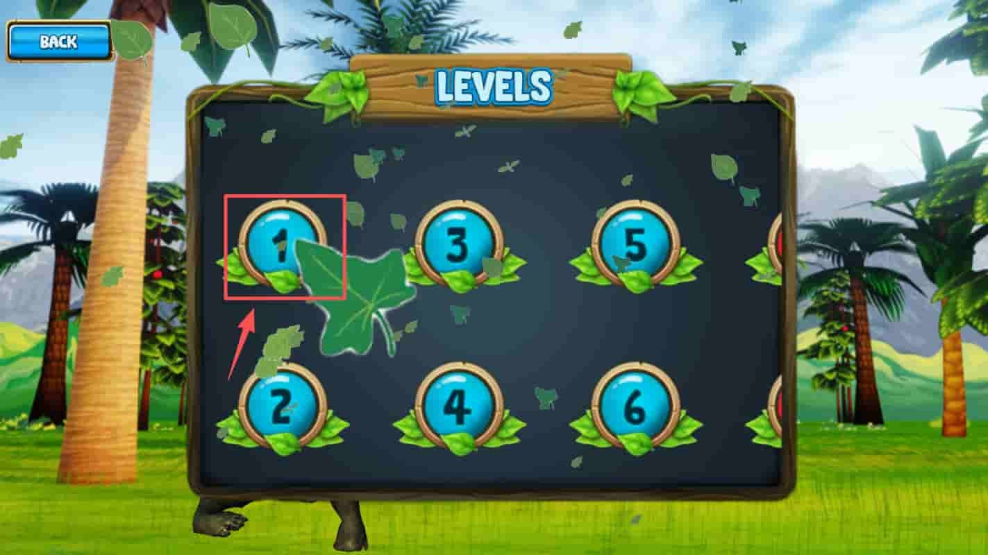2、选择关卡1开始游戏,点击数字1进入第一关。