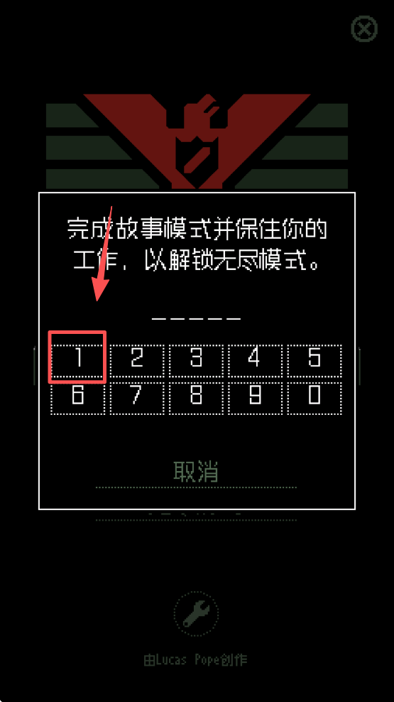 2、输入密码“1”,完成故事模式并解锁无尽模式,继续游戏进程。