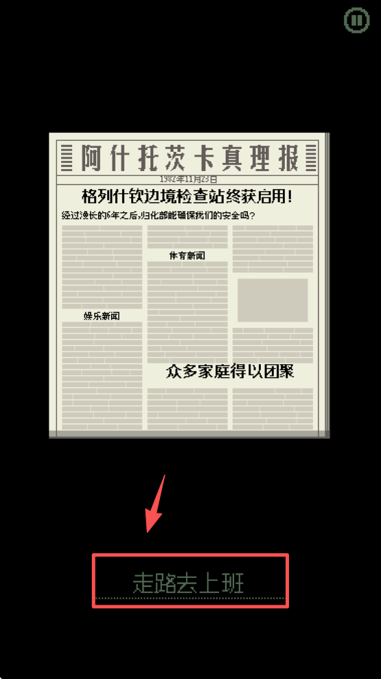 4、点击“走路去上班”按钮,开始新一天的工作,处理边境检查站的事务。