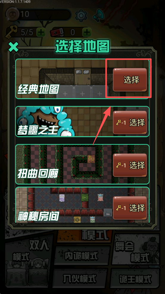 2、在地图选择界面,点击“选择”按钮开始。