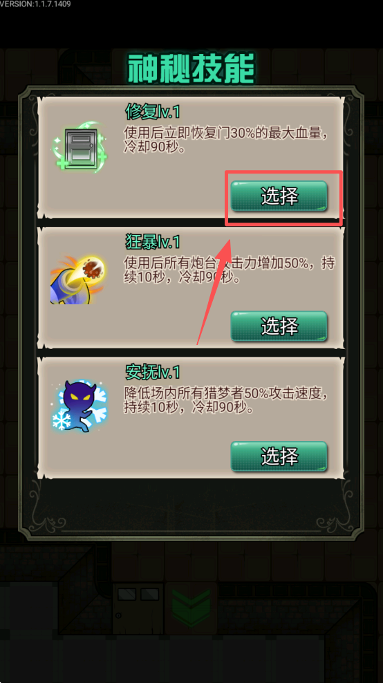 3、选择一个神秘技能,点击“选择”按钮装备。