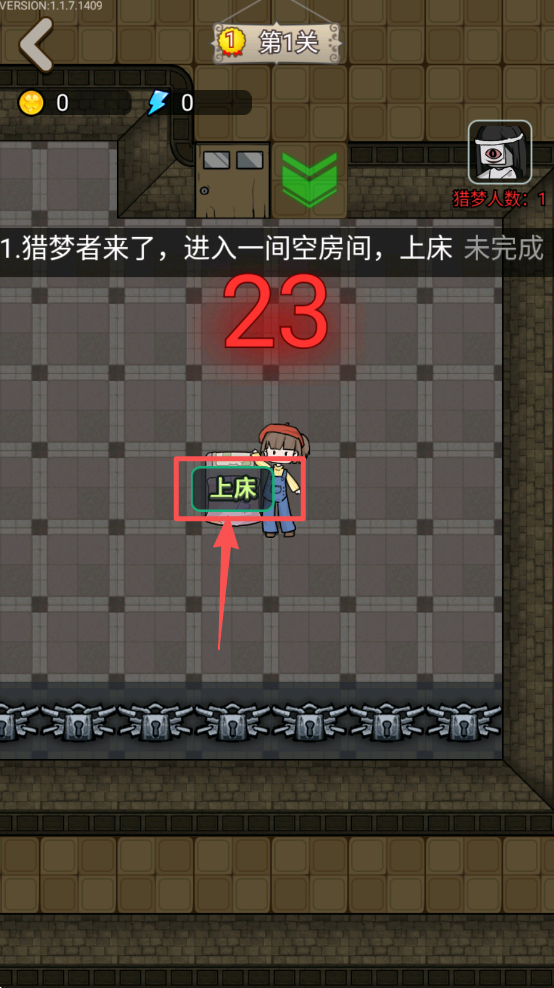 4、根据提示点击“上床”按钮,完成游戏任务。