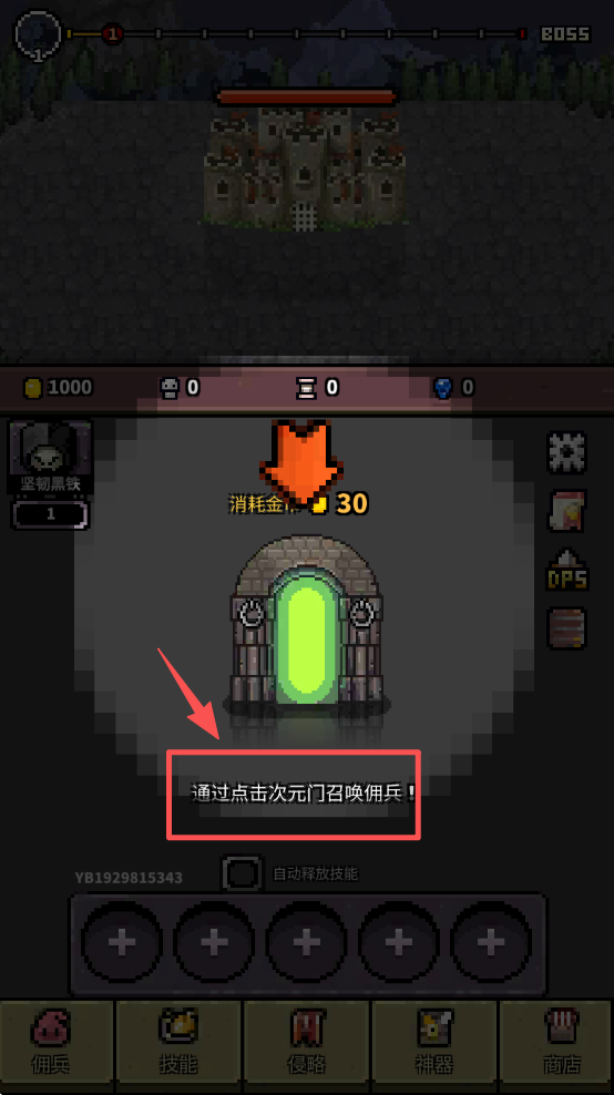 2、在战斗准备界面,点击次元门消耗金币召唤佣兵,准备战斗。