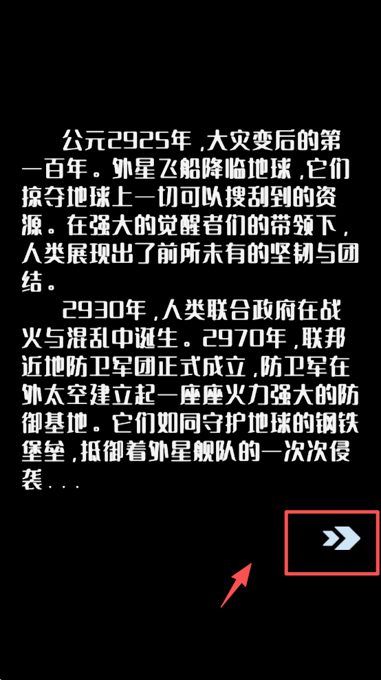 1、点击屏幕上的“>>”按钮,跳过游戏介绍,直接进入游戏主界面。