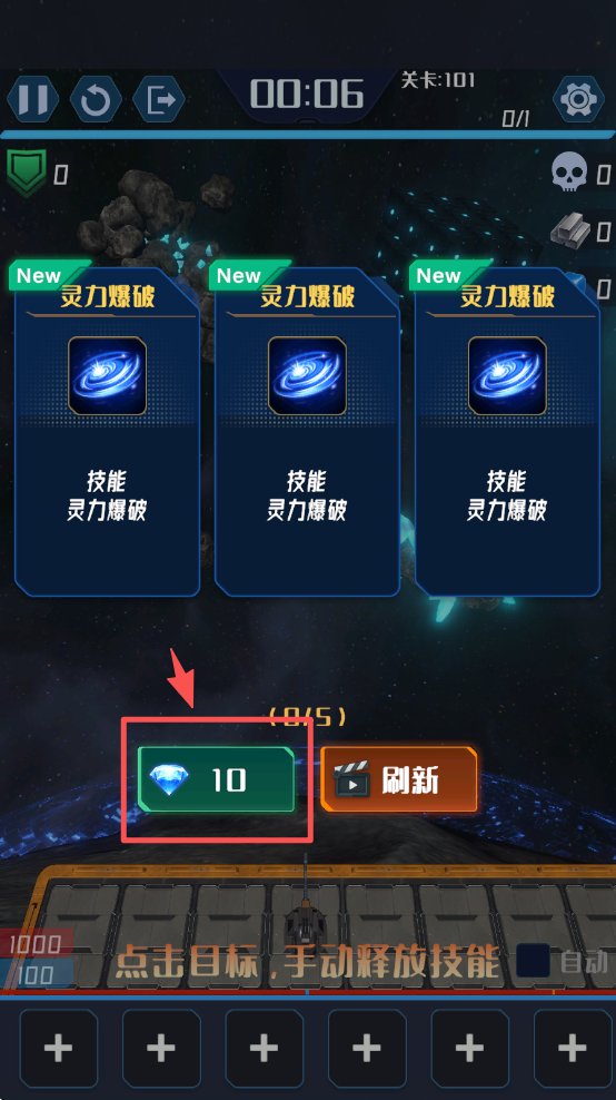 4、点击“刷新”按钮获取新技能,或使用钻石立即更新你的技能库,增强战斗力。