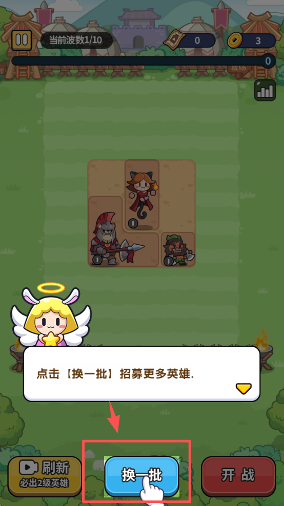 3、点击“换一批”按钮,招募更多英雄,增强你的防御力量。