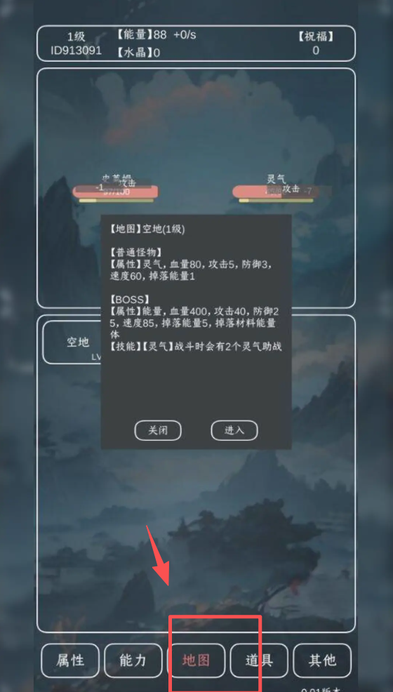 3、点击“地图”按钮,了解不同地图的怪物信息,规划你的探索路线。