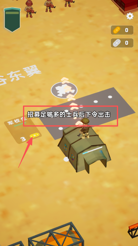 2、找到合适的地点点击搭建按钮,建立你的临时兵营。