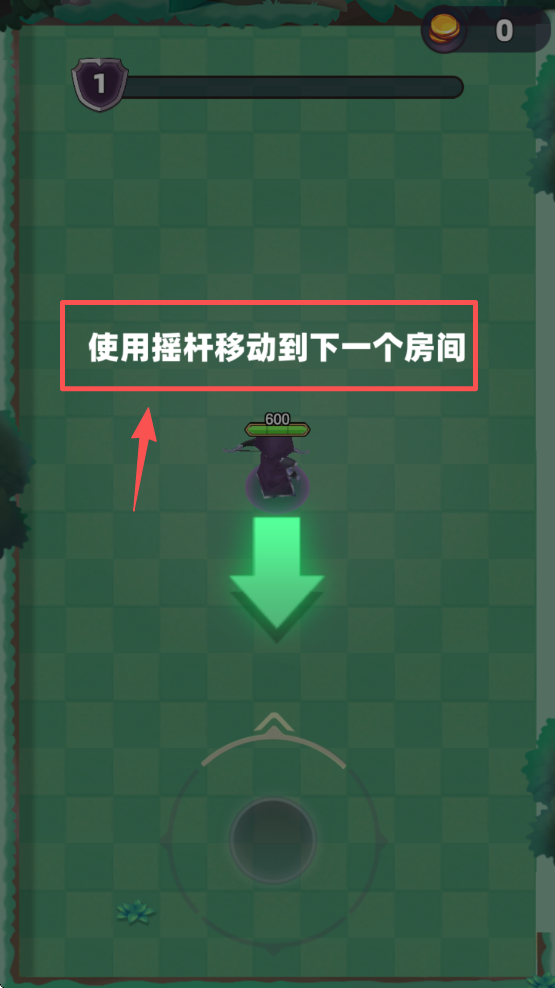1、使用摇杆控制角色移动到下一个房间,探索游戏世界。