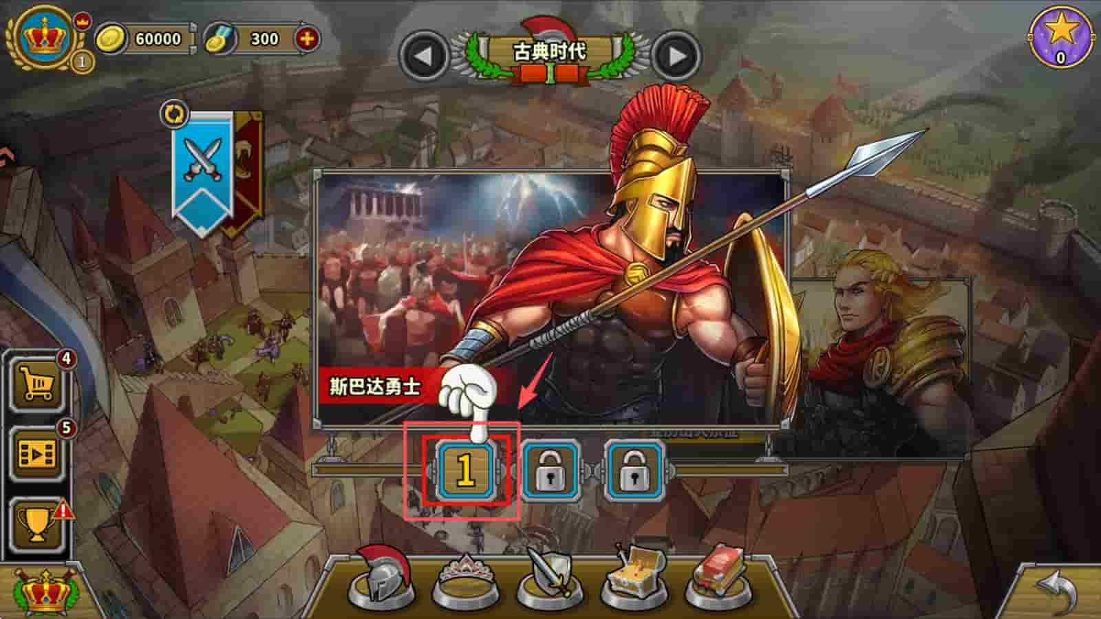 2、点击“1”号位置的斯巴达勇士,选择你的初始战斗单位。