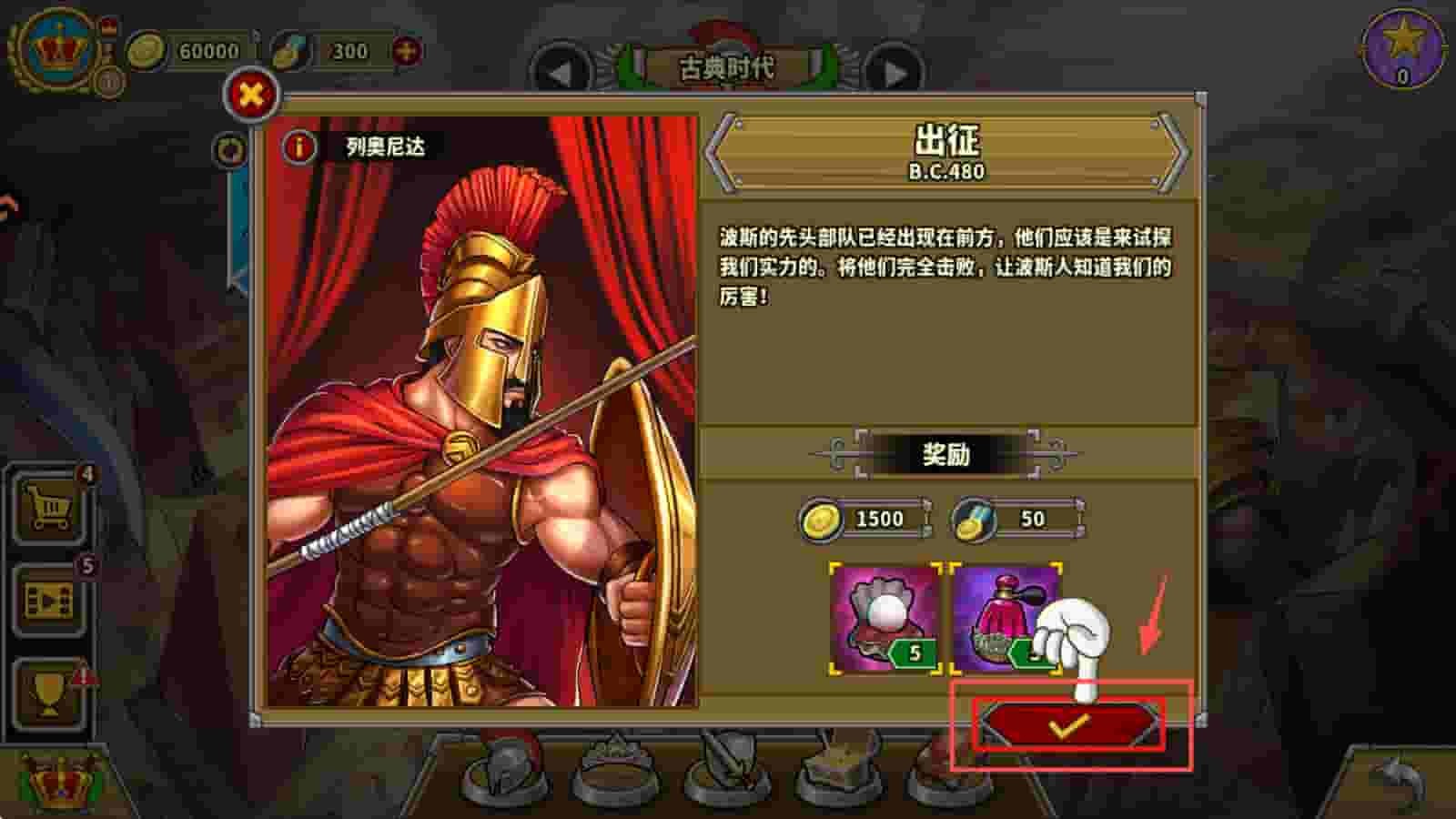 3、在出征界面点击“确认”按钮,派出你的部队进行首次战斗。