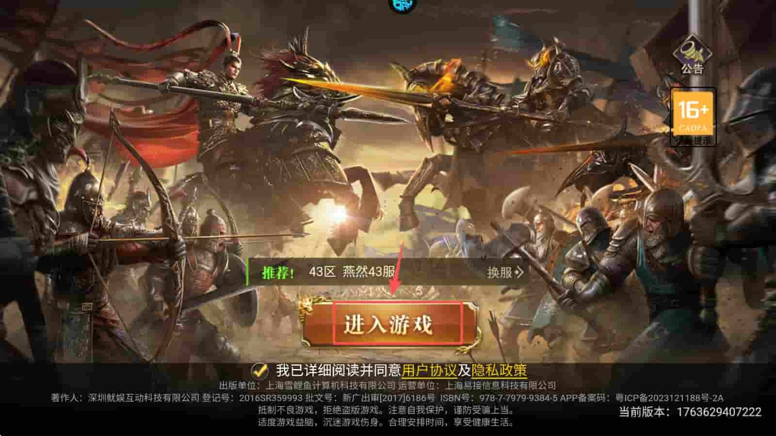 1、点击“进入游戏”按钮,选择服务器,开始你的三国战争之旅。