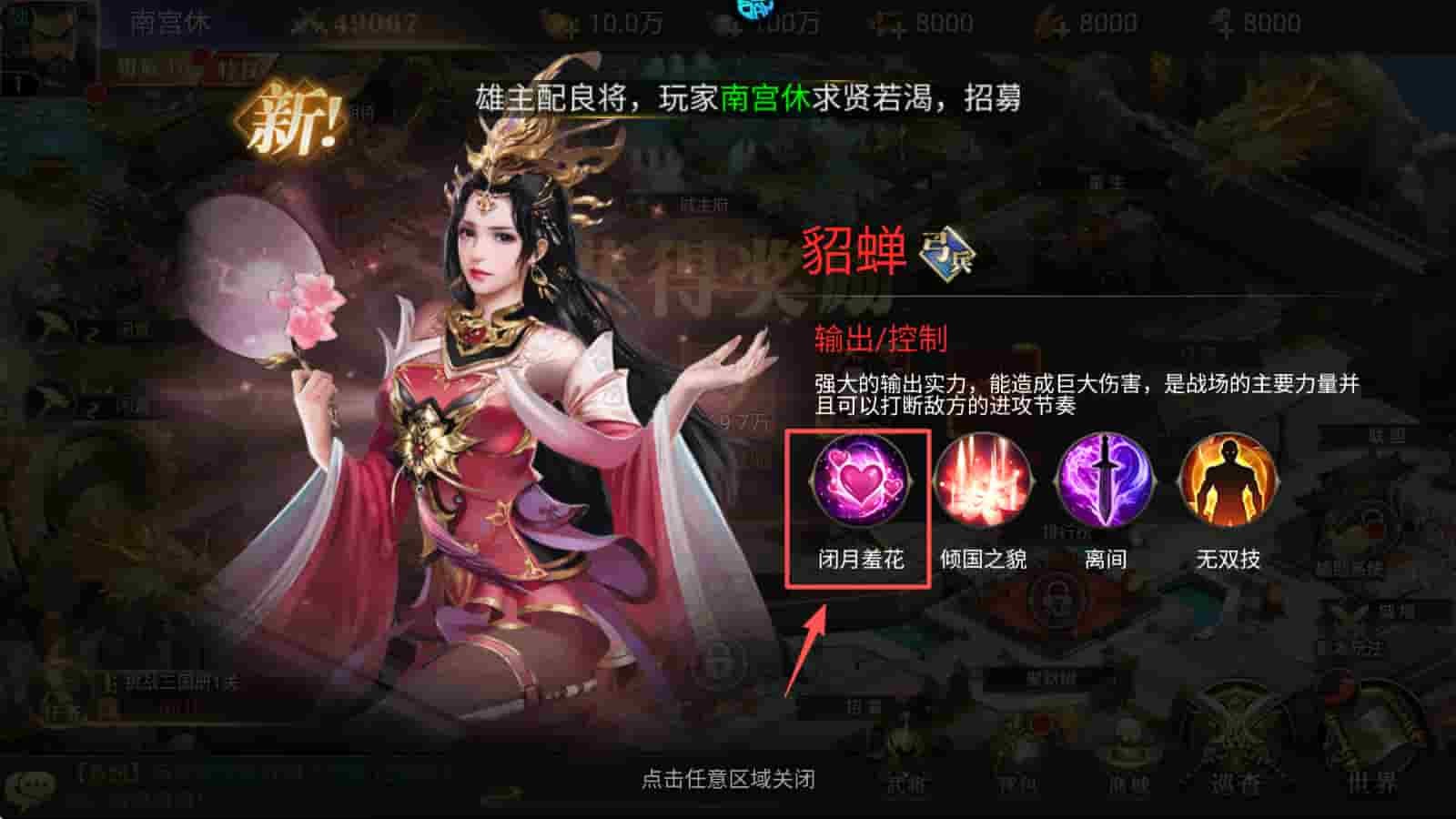 4、点击“招募”按钮,获取新的武将,增强你的军队实力。