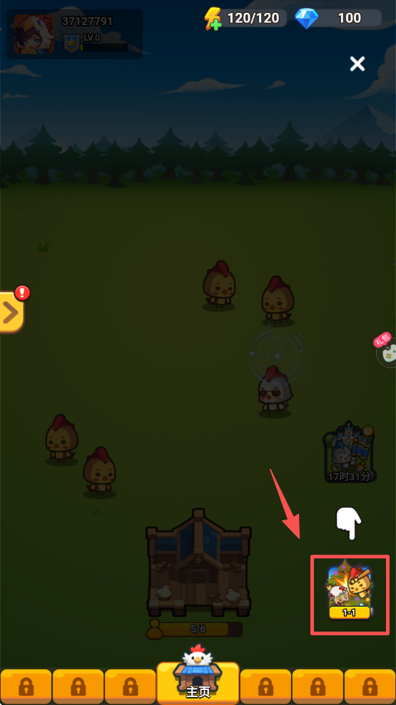 1、点击地图上的鸡舍建筑,开始建造或升级,增加小鸡数量。