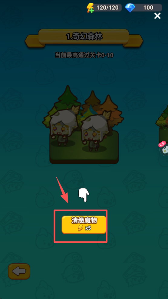 4、点击“清缴魔物”按钮,清除障碍,继续游戏进程。