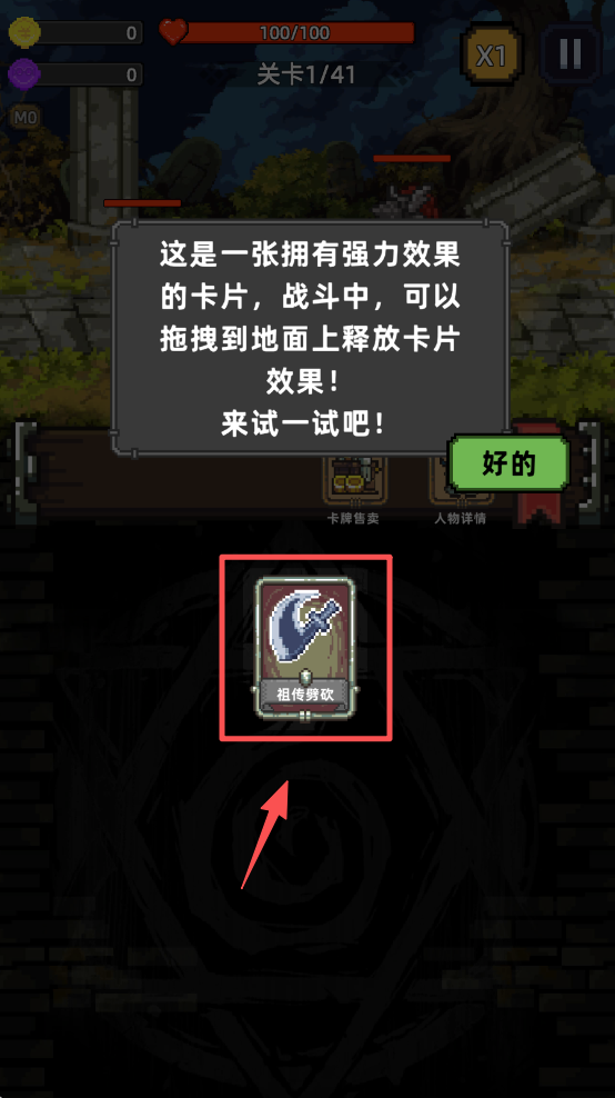 3、在游戏中了解你获得的卡片效果,拖拽卡片到地面上释放效果。