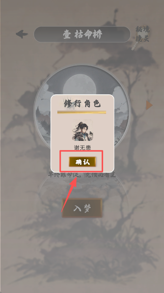 2、在修行角色界面,点击“确认”按钮选择你的角色,进入游戏。
