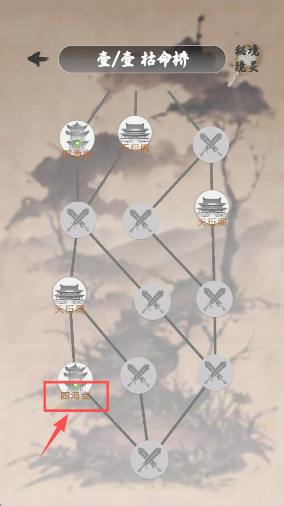4、在枯命桥界面,选择“四海会”等地点,探索不同的修仙路径。