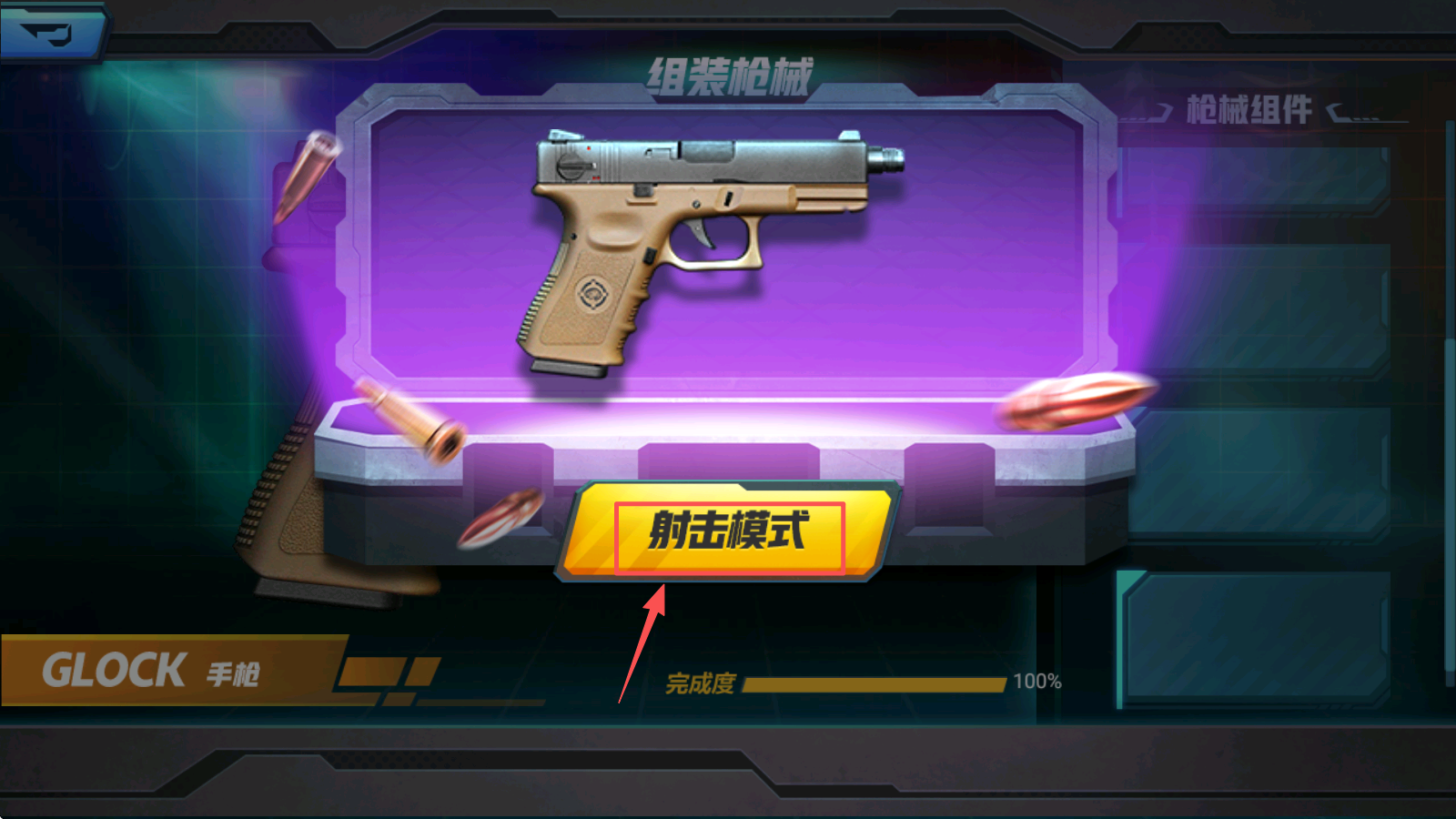 3、点击“射击模式”按钮完成组装。确认所有组件组装完毕后,选择射击模式以准备战斗。