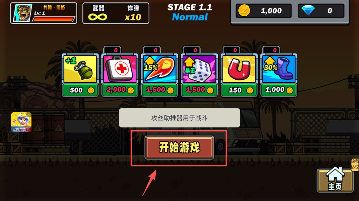 3、在游戏准备界面,购买并装备合适的道具,以增强战斗力。