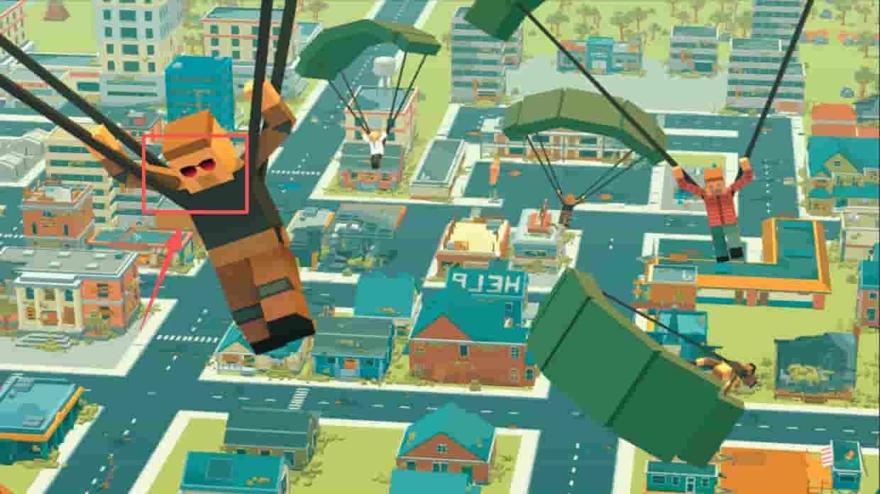 3、跳伞降落,控制角色跳伞,选择降落地点。