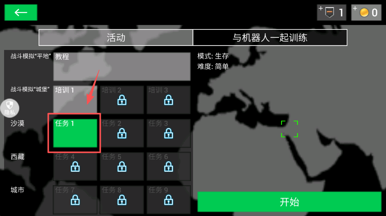 2、选择任务,在活动界面,点击“任务1”开始游戏。