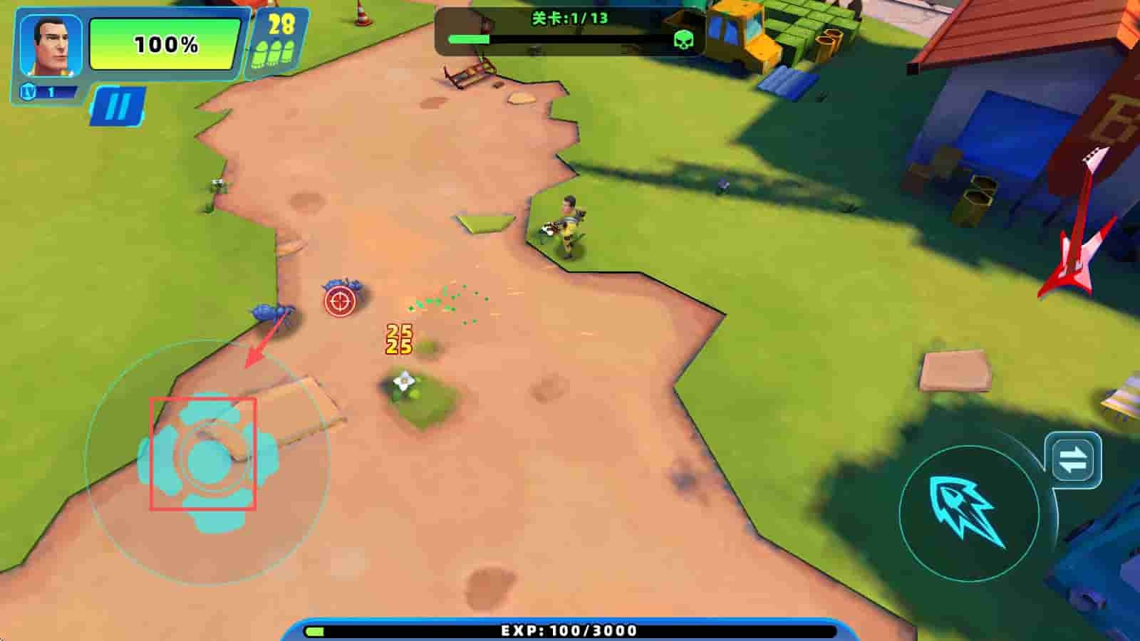 4、移动和攻击,使用虚拟摇杆移动角色,点击攻击按钮消灭敌人。
