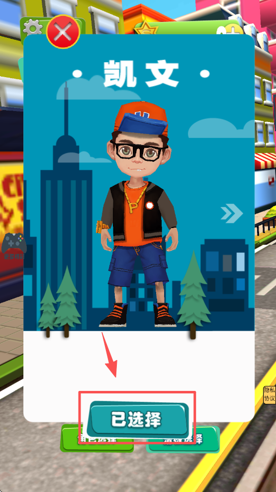 2、在角色选择界面,点击“已选择”按钮确认选择角色。