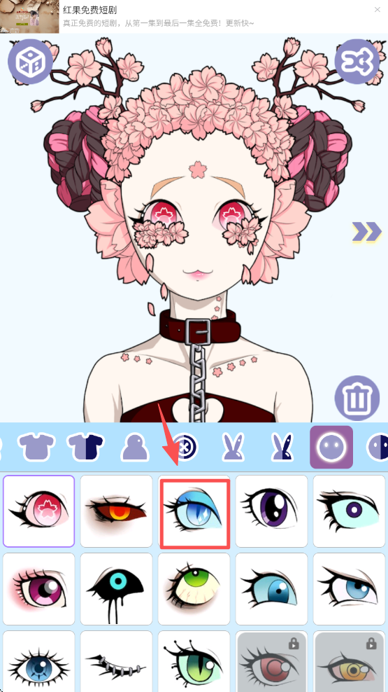 4、选择眼睛,点击左侧的眼睛图标,为角色选择一双美丽的眼睛。