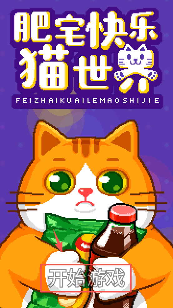 1、看到界面上的 “开始游戏” 按钮,点击它就能进入肥宅快乐猫世界啦。