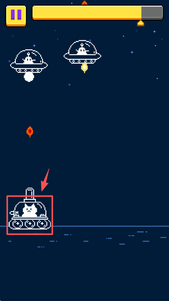 4、进入游戏关卡后,操控标红的猫咪飞碟,躲避障碍、完成关卡任务即可。