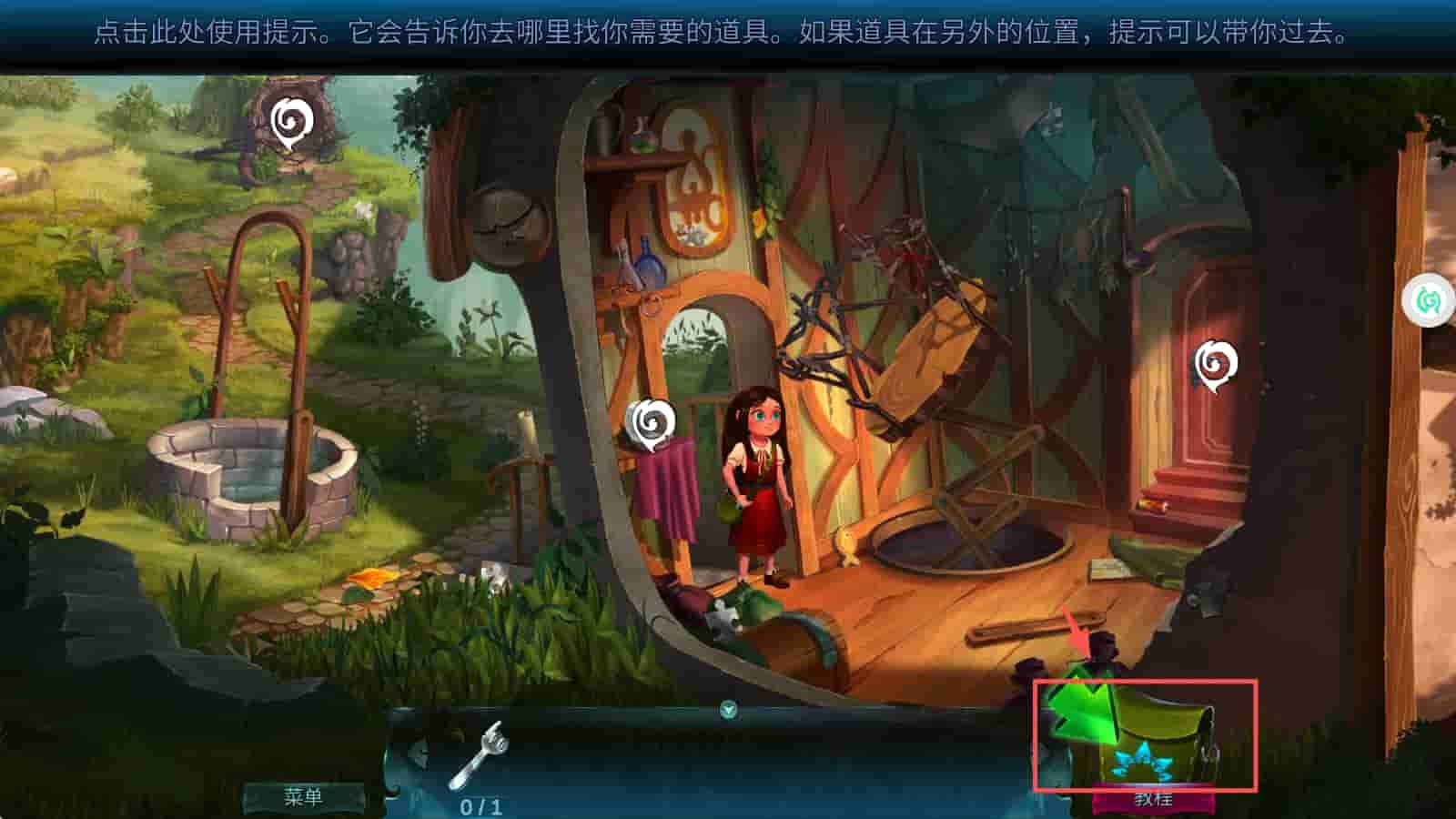 1、首先,点击提示按钮,获取寻找道具的线索,如果道具在远处,提示会带你前往。