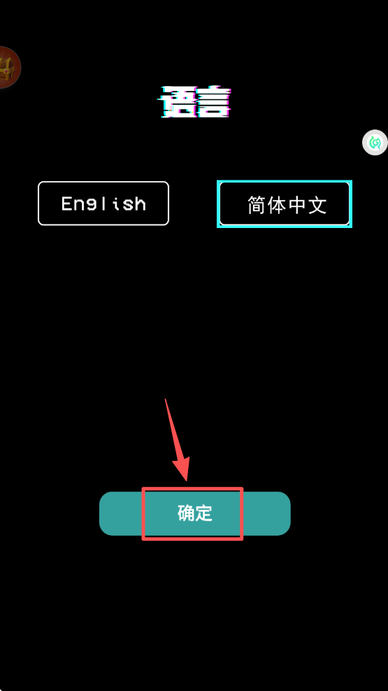 1、首先选择游戏语言,点击“简体中文”或“English”进行设置,然后点击“确定”按钮完成选择。