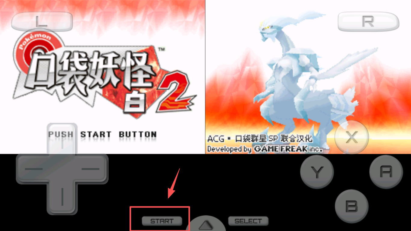 2、在游戏启动画面,点击“START”按钮,进入游戏,开始你的口袋妖怪 白2冒险。